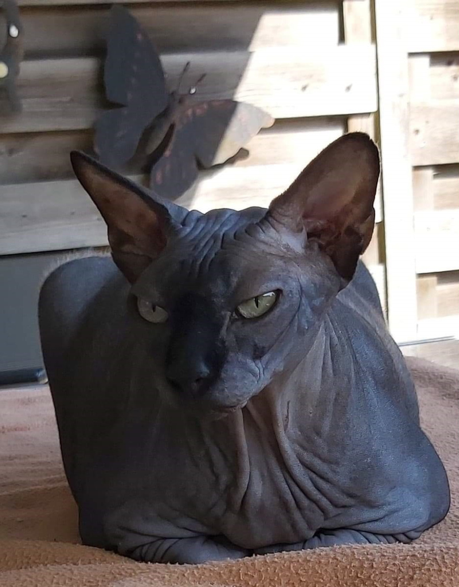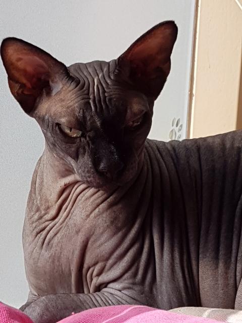 Ze is een paar keer mee naar een kattenshow geweest , de keurmeesters vonden haar geweldig , een klassiek type Sphynx .